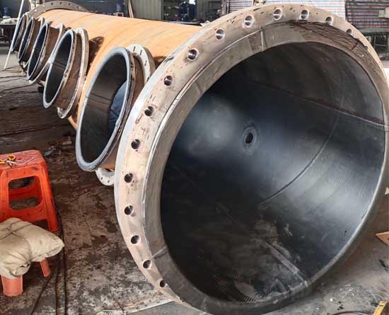 电厂脱硫丁基胶衬胶管道,是一种外部以钢或者硬质结构为管道骨架,内衬耐磨、防腐以及耐高温的丁基橡胶作为衬里层,通过丁基橡胶自身物理和化学性能从而降低了管路输送介质对外部结构的作用如冲击力、腐蚀等