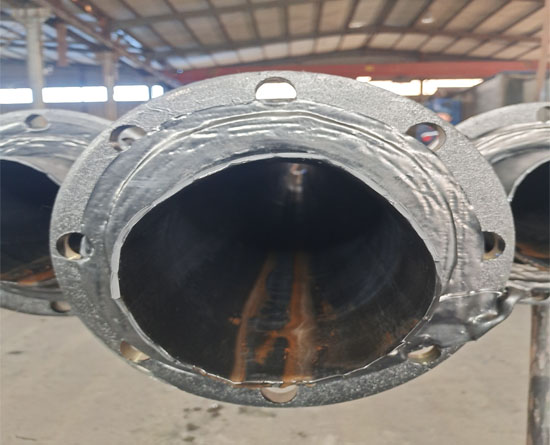 3. 温度适应范围广脱硫衬胶管道可以在-50°C~+150°C的范围内长期使用,衬胶层不会因温度变化而与钢架脱开。